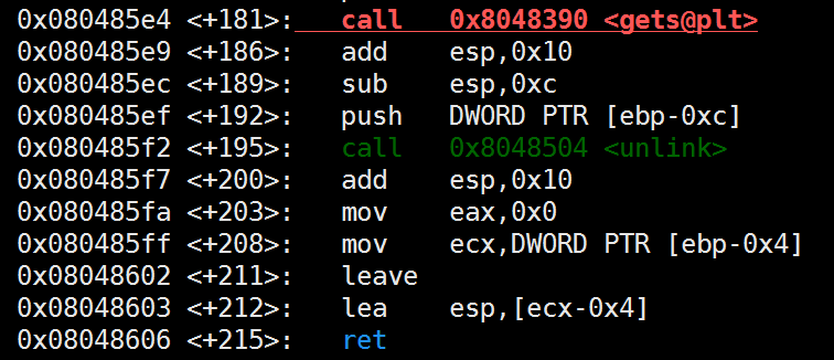 unlink 함수내에서 MOV EBP, ESP후 A의 주소와 unlink의 EBP 까지는 0x1C만큼 차이난다. (A - 0x1C == EBP[unlink])