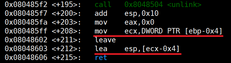 ( EBP[main]-0x4 )의 값이 ecx의 주소여야 한다